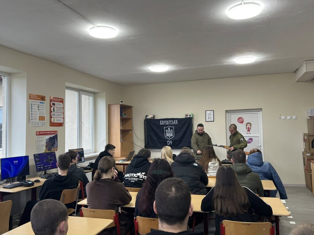 Особливою подією стала зустріч учнів із представниками «Карпатської Січі», які завітали до нашого ліцею та провели для дітей пізнавальну, яскраву й вкрай важливу демонстрацію. Наші здобувачі освіти мали нагоду побачити те, що зазвичай доступне лише військовим: бійці показали сучасне спорядження, елементи екіпірування, бронежилети та необхідні речі, які завжди є поруч із захисником.