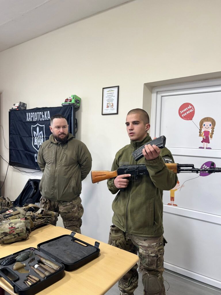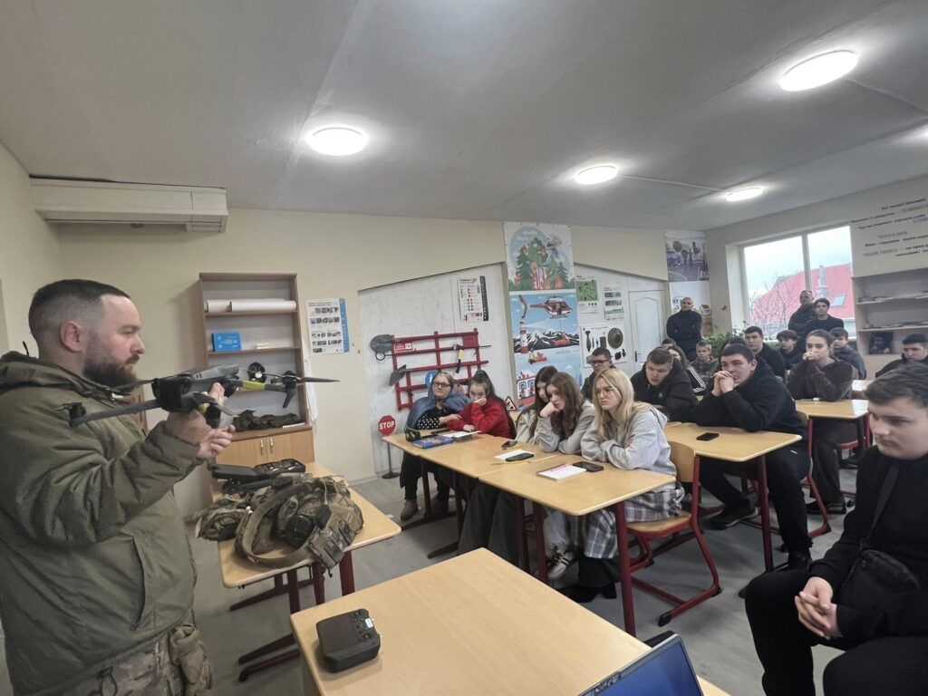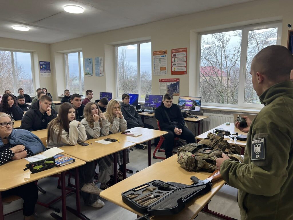 Велику цікавість викликала демонстрація зброї — діти спостерігали, як воїни вправно розбирали та збирали автомат, пояснювали принцип його роботи та безпекові правила. Не менше захоплення викликав і дрон — незамінний інструмент сучасного війська. Учні дізналися, як його застосовують на передовій, які завдання він допомагає виконувати та чому він рятує життя.