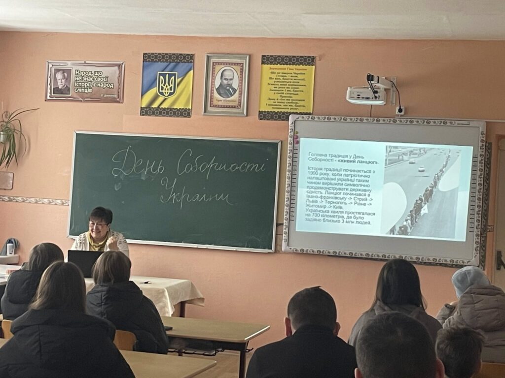 З метою формування національної свідомості та патріотизму вчителем історії Шимонею Н.М. для учнів 8–11 класів було проведено змістовну виховну бесіду «Соборність України — єдність, що творить державу». Під час заходу школярі пригадали події Дня Злуки, усвідомили значення єдності українських земель та важливість збереження цілісності нашої країни.
