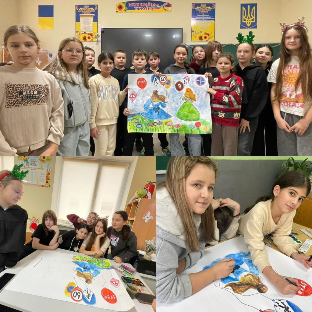 Також вчителем образотворчого мистецтва Красною Іванною Вікторівною було створено яскравий та змістовний плакат із дорожніми знаками, до виготовлення якого активно долучилися учні 6-Б і 6-В класів.