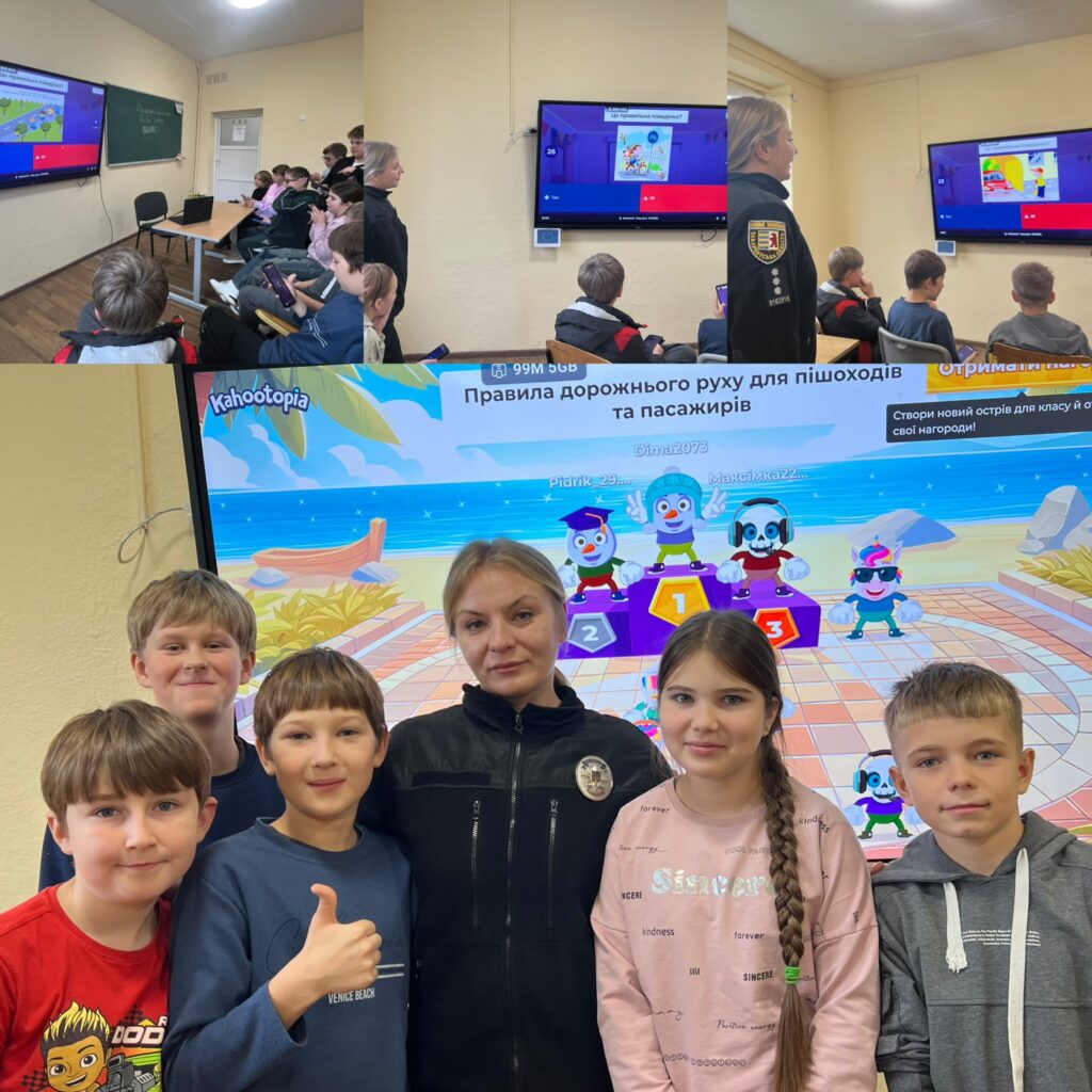 Не менш захопливими для школярів стали онлайн-ігри, кахути та інтерактивні вікторини, де діти мали змогу перевірити свої знання у веселій, змагальній формі. Результати приємно вразили: учні продемонстрували високий рівень обізнаності щодо правил безпечної поведінки на дорозі та показали справжню відповідальність.