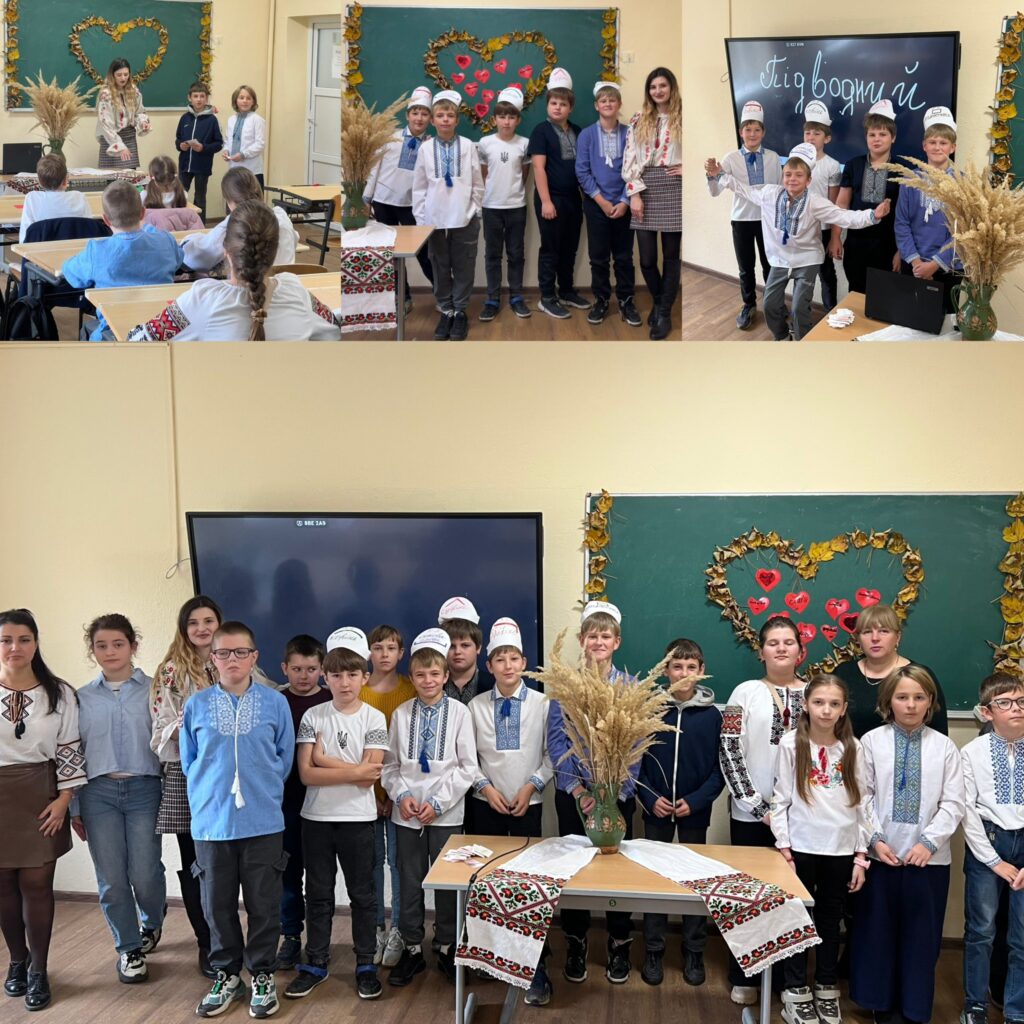 Урок у 5-Б класі провела Салтикова Олеся Іванівна. Учні мали змогу проявити свої знання, здобуті на уроках української мови, граючи в інтерактивні мовні ігри. Діти «світили» картками, визначаючи омоніми, синоніми, пароніми; змагалися у грі «Пряме чи переносне значення»; вибудовували «живі ланцюжки» слів — префікс, корінь, суфікс, закінчення, основа слова. А наприкінці створили велике спільне сердечко, у якому кожен записав свої асоціації зі словом «українська мова». Це було щиро, креативно й по-дитячому зворушливо.