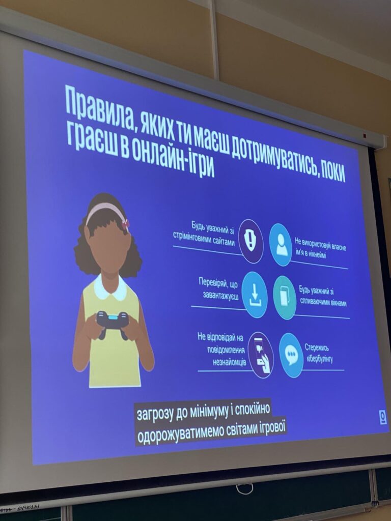 Під час онлайн-сесій школярі дізналися, як захистити особисті дані, створювати надійні паролі, розпізнавати шахрайство, безпечно користуватися соцмережами та іграми, а також як підтримувати баланс між віртуальним і реальним світом.