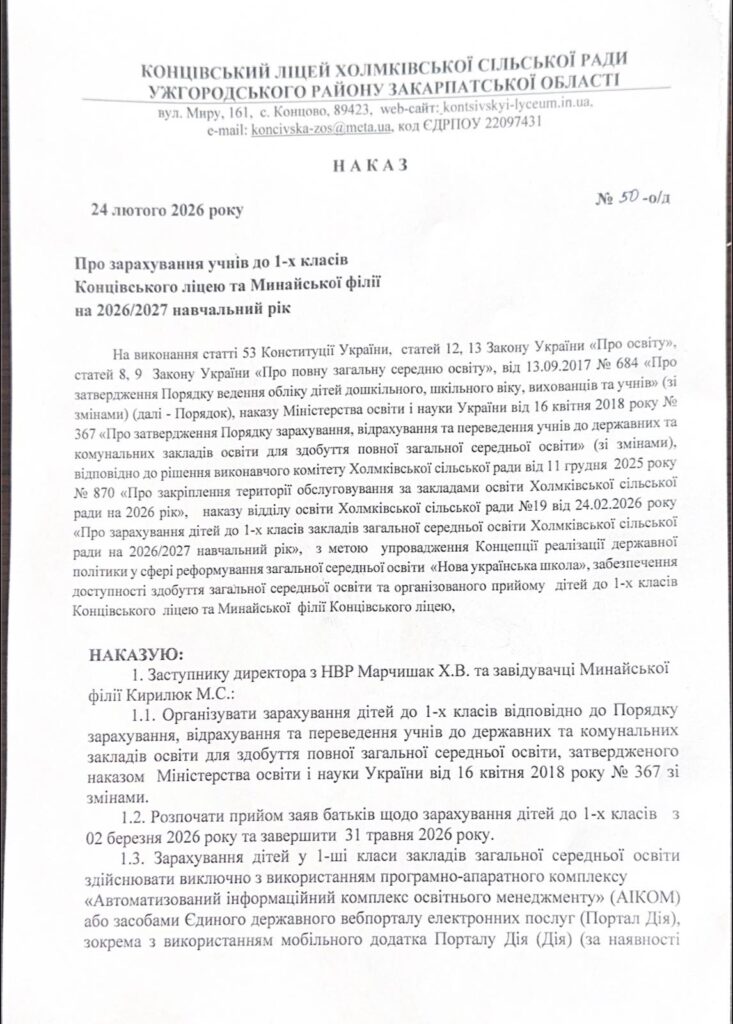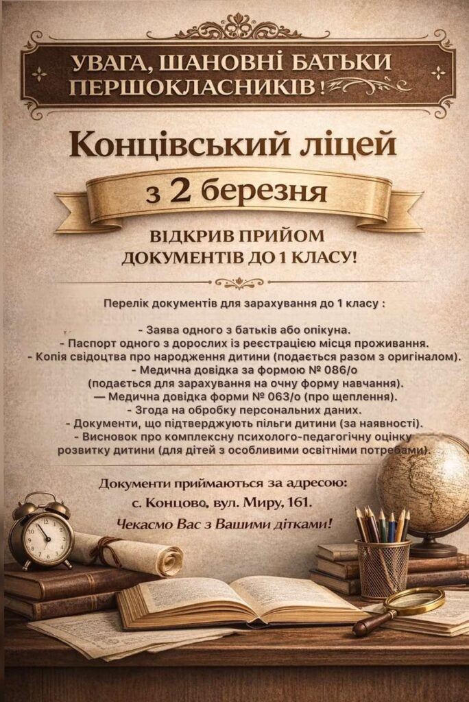 Про зарахування учнів до 1-х класів Концівського ліцею та Минайської філії на 2026/2027 навчальний рік 2 Березня, 20262 Березня, 2026 Салтикова Олеся
