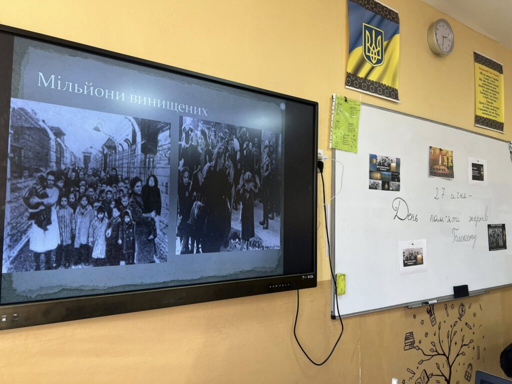 У межах пам’ятних заходів вчителька Красна Іванна Вікторівна провела виховну бесіду з учнями 7–9 класів. Під час зустрічі школярі ознайомилися з подіями Другої світової війни, дізналися про причини та наслідки Голокосту, долі мільйонів людей, які стали жертвами нацистського режиму.